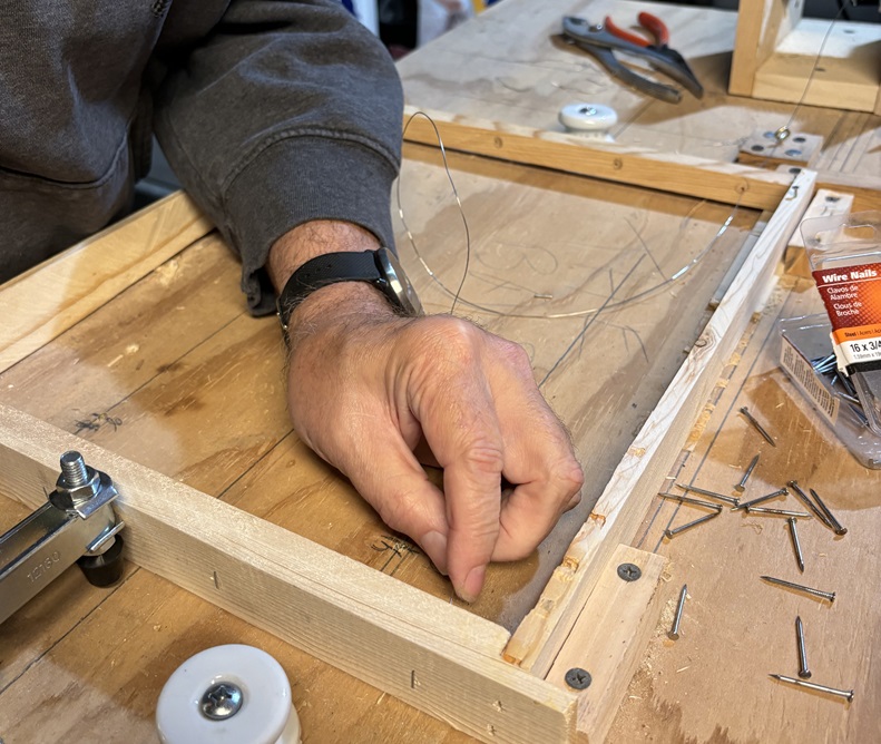 On 10/20/2023, the process of making frames was demonstrated, except for wiring them. Wires are essential for support, regardless of using strips or a full frame of foundation. Although wiring the frame seems simple, challenges like breaking and forgetting to staple occur. Ultimately, about 28 out of 40 frames were successfully wired.
